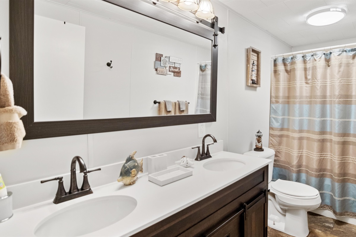 -Bathroom 1: Bathtub/shower, toilet, double sink